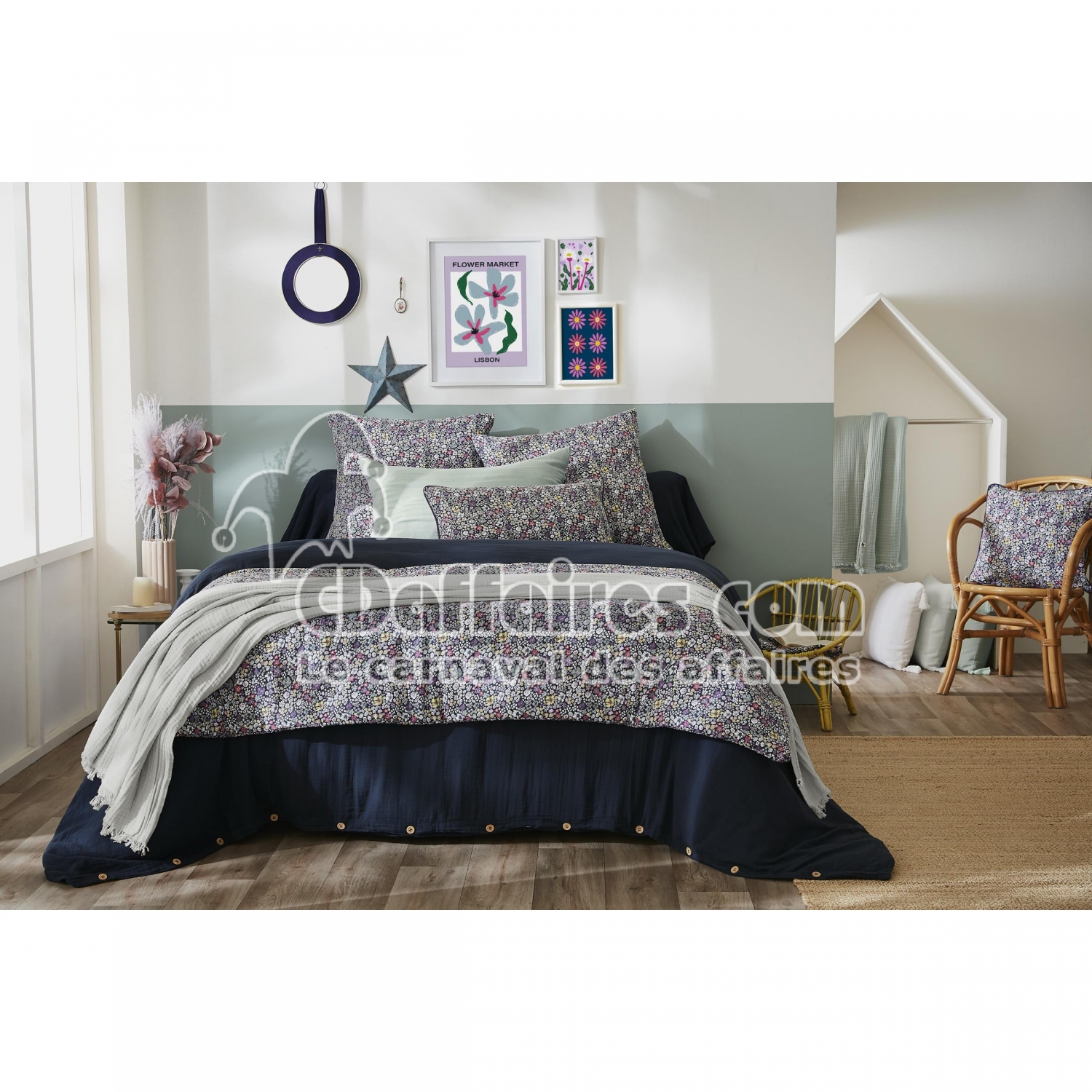 Boutis lit double > Apportez une touche bohème et florale à votre chambre avec le bout de lit Malia en gaze de coton imprimée. Son motif délicatement fleuri et son tissu. Taille 90 x 200 cm.
