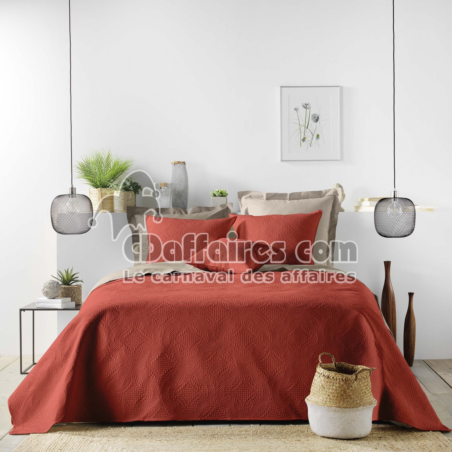 Boutis lit double > Offrez une touche de chaleur et de raffinement à votre chambre avec le couvre-lit matelassé Romane en coloris terracotta. Sa teinte chaleureuse et son motif. Taille 220 x 240 cm.