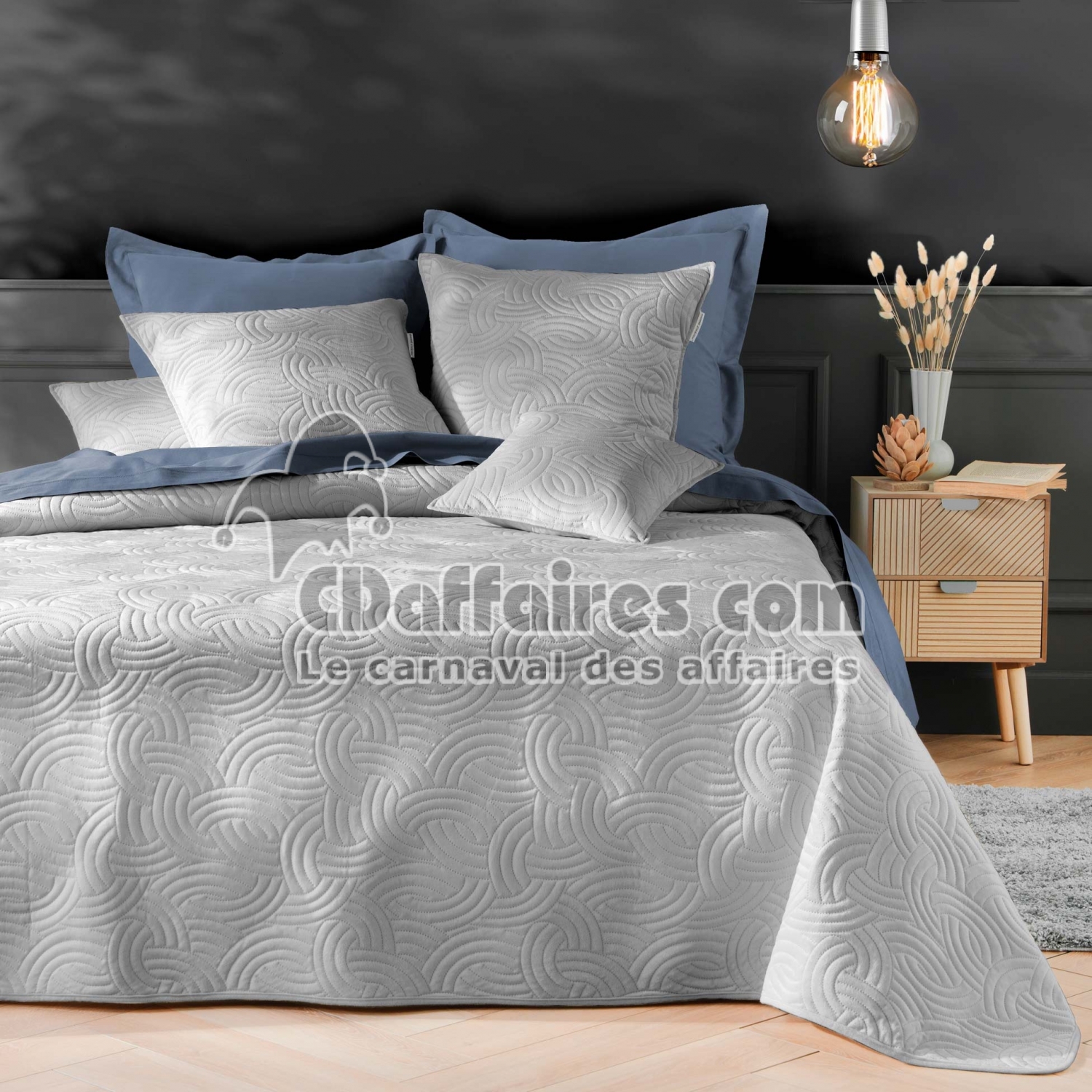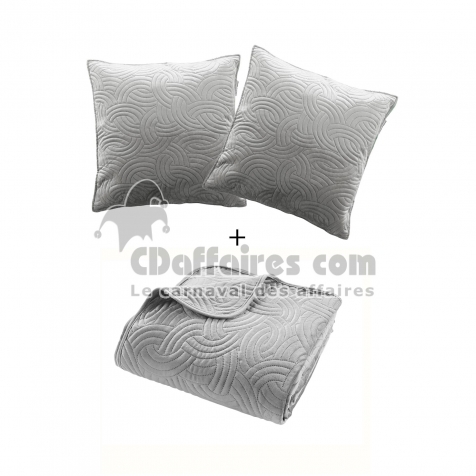 Couvre-lit 240x260 cm + 2 housses de coussin 60x60 cm – Velours uni matelassé SOLANGE Gris - CDAffaires