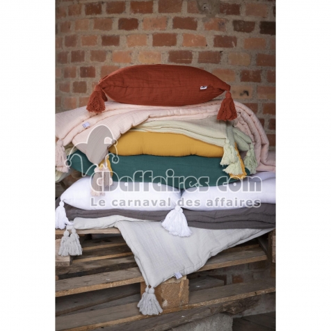 Habillez votre lit ou votre canapé avec cet édredon GAÏA en double gaze de coton, ici dans la teinte Ficelle, un beige naturel, doux et chaleureux. Confortable et décoratif, il apporte immédiatement une touche cosy à votre intérieur, tout en s’intégrant facilement à toutes les ambiances : bohème, naturelle, épurée ou scandinave.