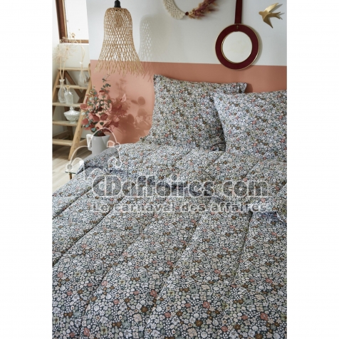 Couettes microfibre et oreillers > Très jolie couette réversible tempérée pour en coton + 1 taie d'oreiller 60x60 cm dans les tons fleuris. Cette couette vendue dans sa housse de transport. Taille 140 x 200 cm.
