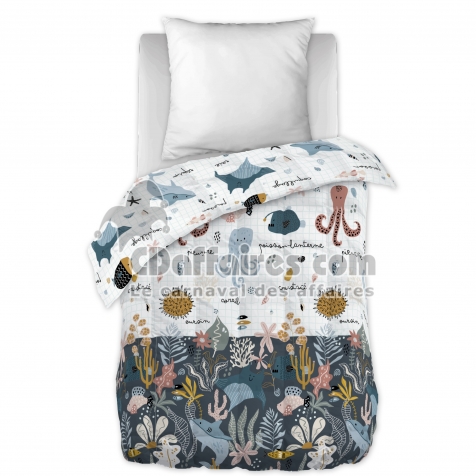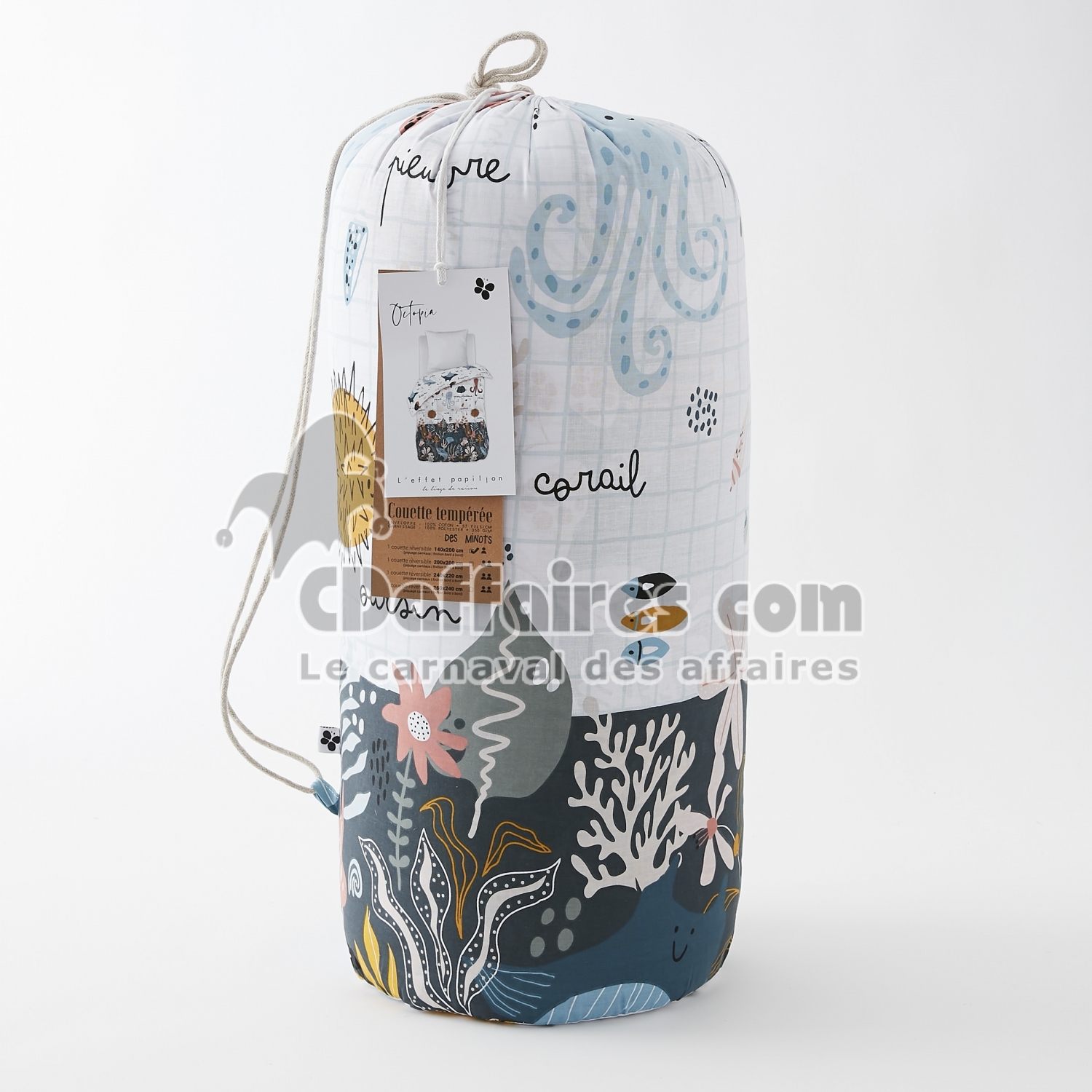 Couettes microfibre et oreillers > Découvrez notre couette enfant avec son imprimé Octopia. Fini les couettes blanches. Cette couette avec son enveloppe 100% Coton et son intérieur 100%. Taille 140 x 200 cm.