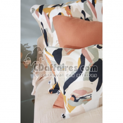 Apportez une touche artistique et contemporaine à votre intérieur avec ce coussin déhoussable 40 x 60 cm en gaze de coton imprimée JULIA. Son motif abstrait unique, composé de formes organiques dans des nuances de caramel, noir profond, beige sable, rose nude et vert sauge, crée un visuel moderne et expressif. Chaque coup de pinceau imprimé apporte du rythme et du caractère, faisant de ce coussin un véritable élément de décoration.