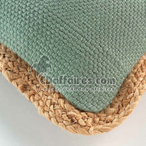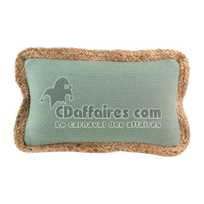 Coussin déhousssable passepoil 30 x 50 cm polycoton +jute Akina Sauge - CDAffaires