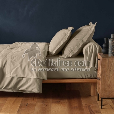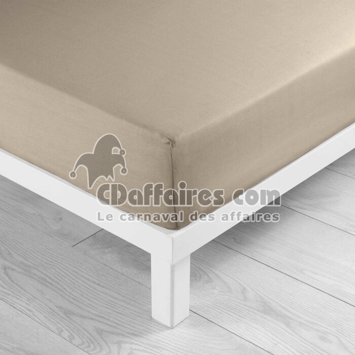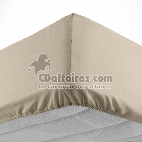 Drap-housse 2 personnes 140 x 190 cm coton 57 fils LINA Sable – Bonnet 30 cm - CDAffaires