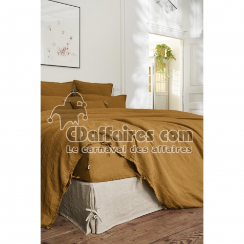 Drap Housse 90 x 190 cm – Lin Lavé Français Luxe Soline – Caramel - CDAffaires