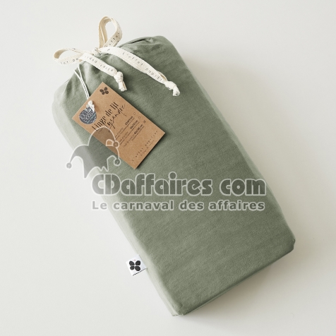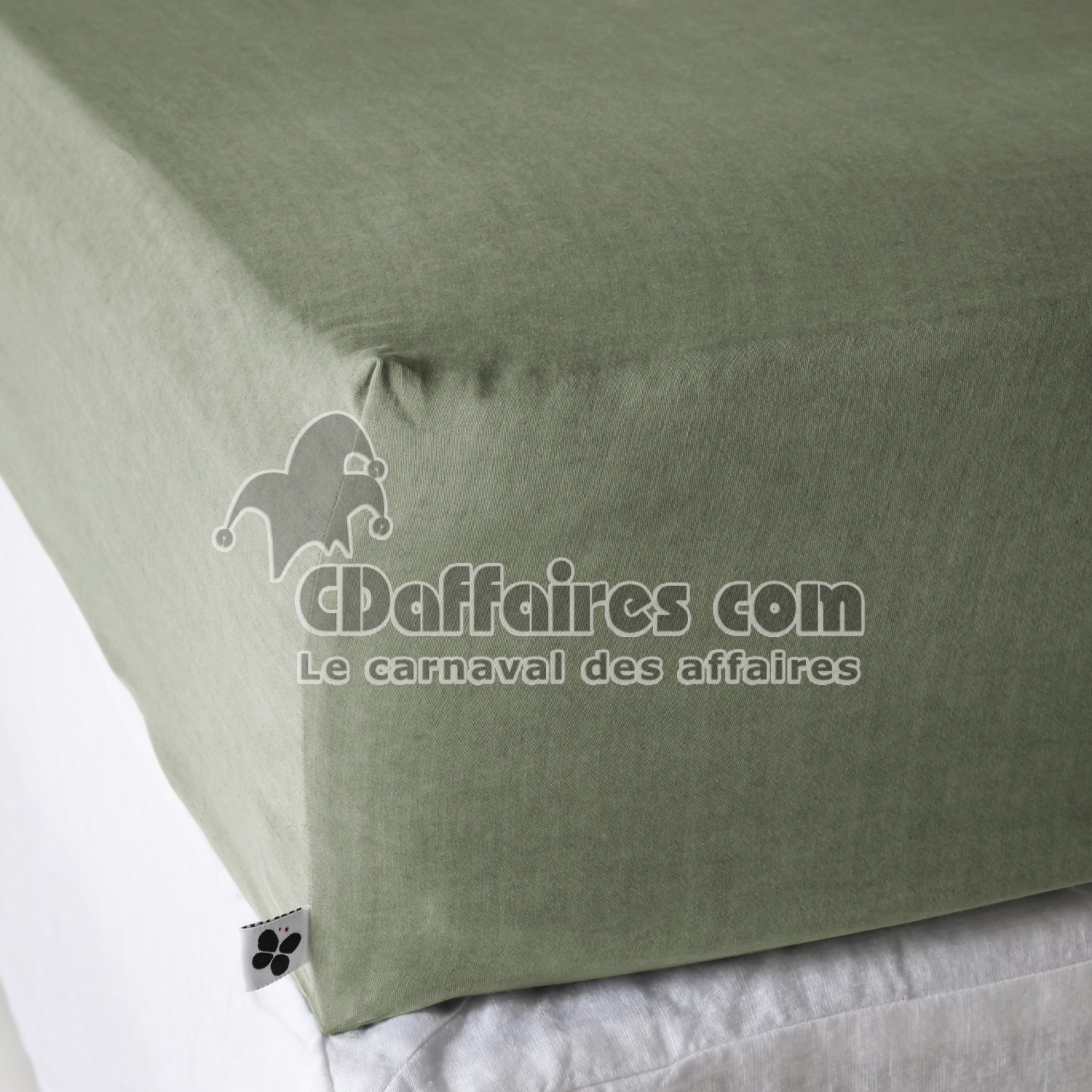 Drap-housse 90 x 190 cm – Lyocell uni LYSANDRE – Thym – Bonnet 30 cm - CDAffaires