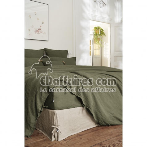 Drap Housse 90 x 190 cm – Lin Lavé Français Luxe Soline – Thym - CDAffaires