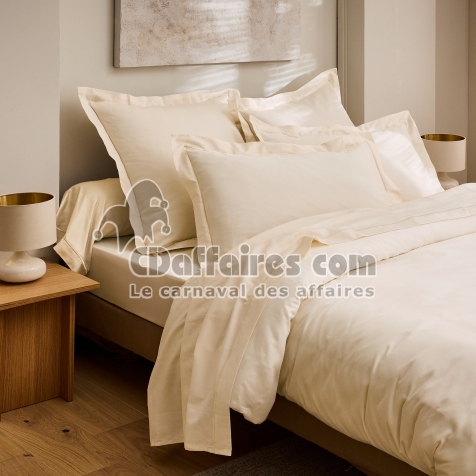 Son tissage serré de 120 fils/cm² garantit une qualité supérieure : le tissu est plus résistant, moins sujet au boulochage et conserve durablement son éclat ainsi que sa tenue lavage après lavage. La finition satin apporte un subtil reflet élégant, mettant en valeur le coloris Crème, doux, et chaleureux, idéal pour créer une atmosphère apaisante et raffinée dans la chambre.