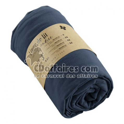 Drap housse flanelle chaude 140 x 190 cm Bonnet 30 cm Candice Bleu - CDAffaires