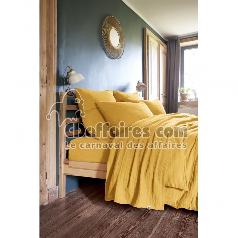 Drap Plat 240 x 300 cm – Double Gaze de Coton Luxe – Gaïa Safran - CDAffaires