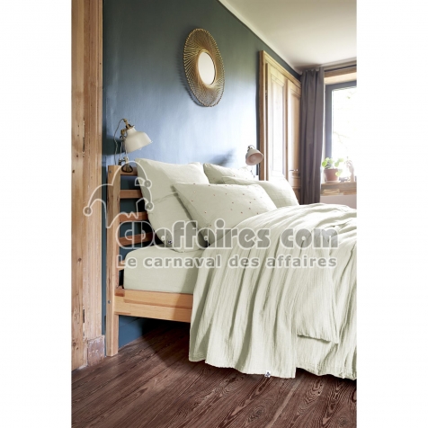 Drap Plat 240 x 300 cm – Double Gaze de Coton Luxe – Gaïa Vert d'eau - CDAffaires