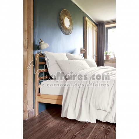 Drap Plat 240 x 300 cm – Double Gaze de Coton Luxe – Gaïa Blanc - CDAffaires
