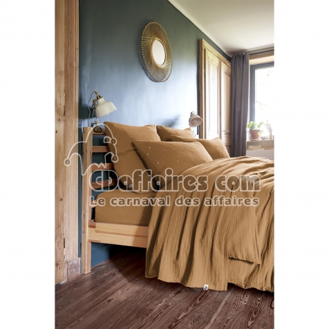 Drap Plat 240 x 300 cm – Double Gaze de Coton Luxe – Gaïa Camel - CDAffaires