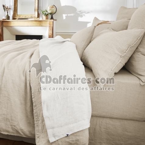 Drap plat 240 x 300 cm – Lin lavé Français - SOLINE Blanc - CDAffaires