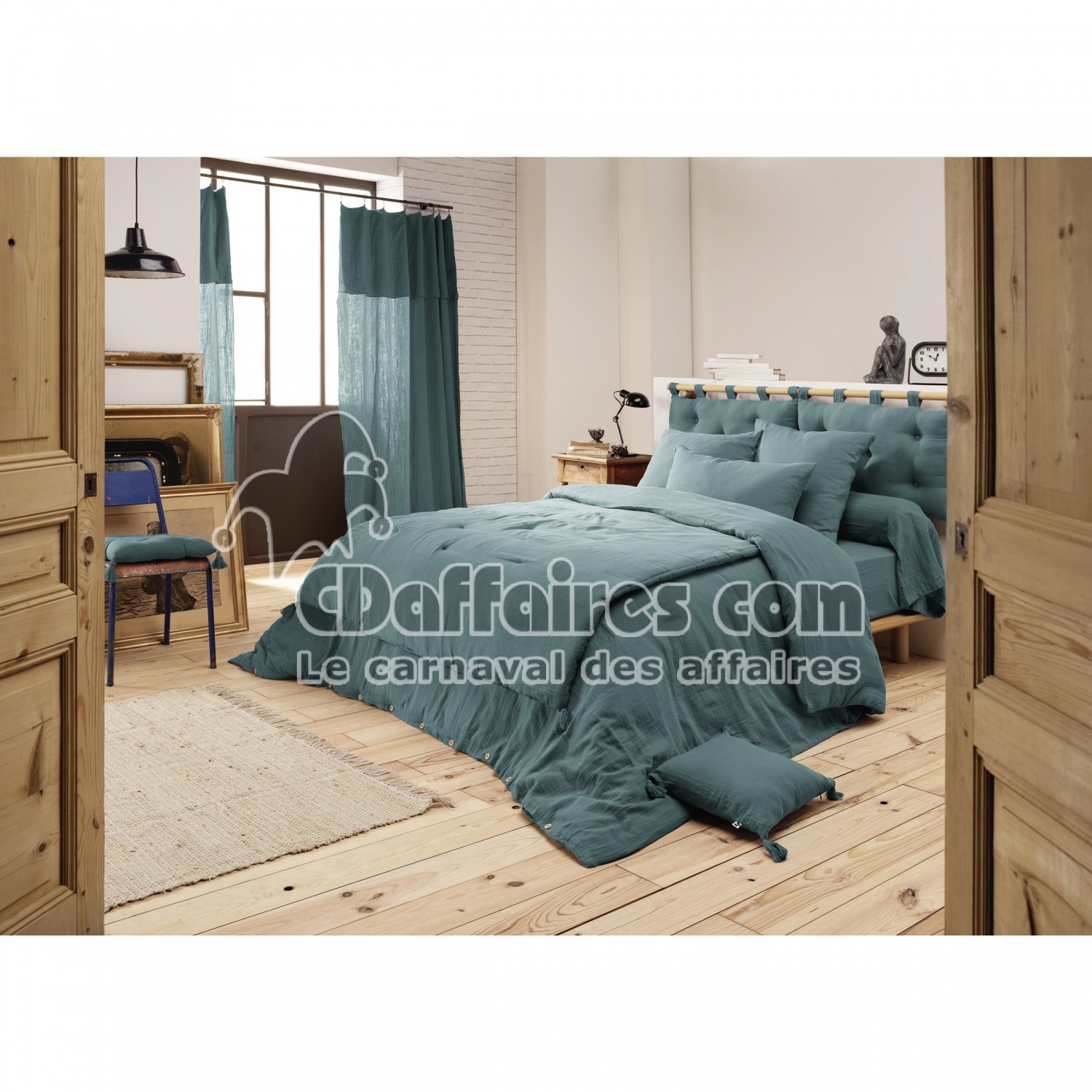 Housse de couette 260 x 240 cm – Double gaze de coton – Gaïa Bleu Canard - CDAffaires
