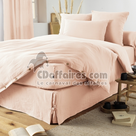 Housses de couette > Apportez prestige et authenticité à votre chambre avec cette housse de couette en double gaze de coton Luxe coloris guimauve. Sa teinte tendre et poudrée. Taille 240 x 220 cm.