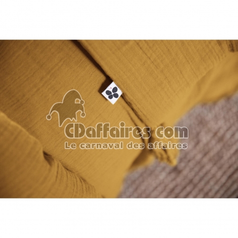 Parure de lit 260 x 240 cm – Double gaze de coton – + 2 taies 50 x 70 - Safran - CDAffaires