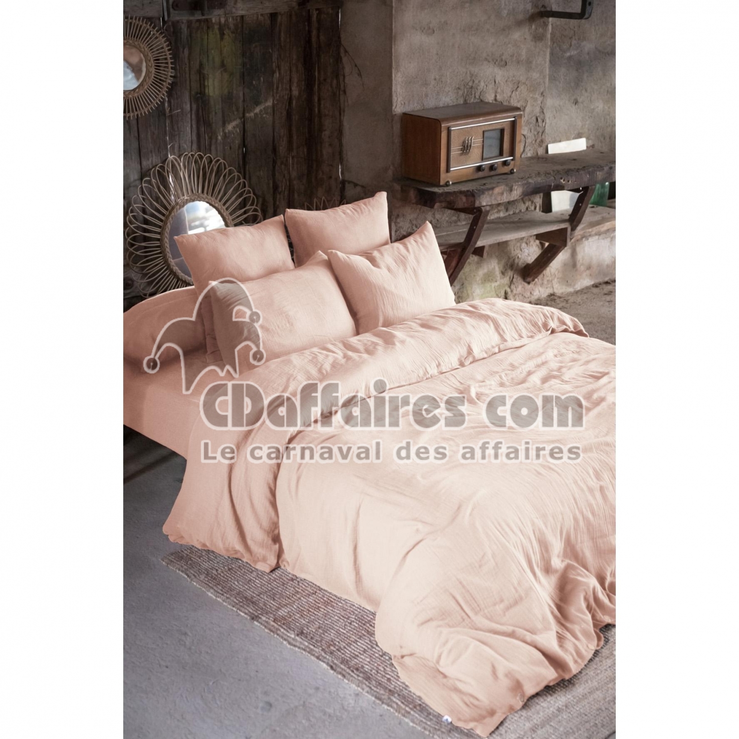 Parure de lit 260 x 240 cm – Double gaze de coton – + 2 taies 50 x 70 - Guimauve - CDAffaires
