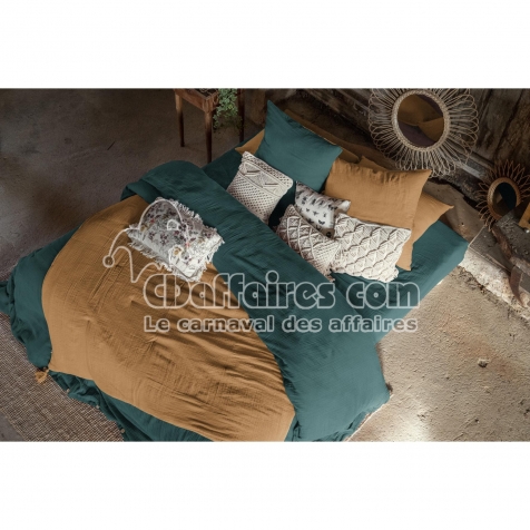 Housses de couette > Offrez à votre chambre le charme naturel et le confort incomparable de la double gaze de coton avec ce pack complet de linge de lit. Léger, respirant et. Taille 240 x 220 cm.