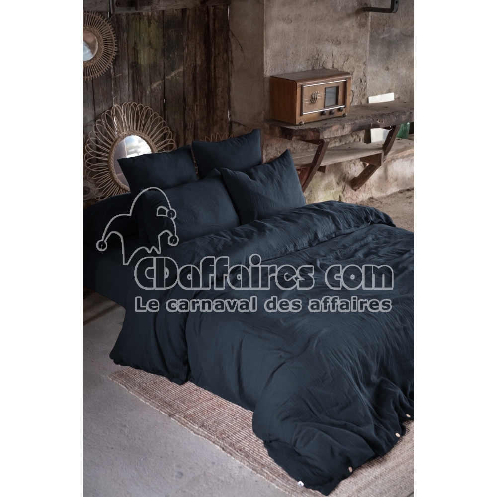 Housses de couette > Apportez prestige et authenticité à votre chambre avec cette housse de couette en double gaze de coton Luxe coloris bleu foncé. Sa teinte profonde et. Taille 240 x 220 cm.