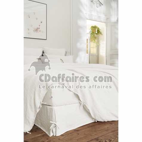 Housse de Couette 260 x 240 cm – Lin Lavé Français Luxe Soline – Blanc - CDAffaires