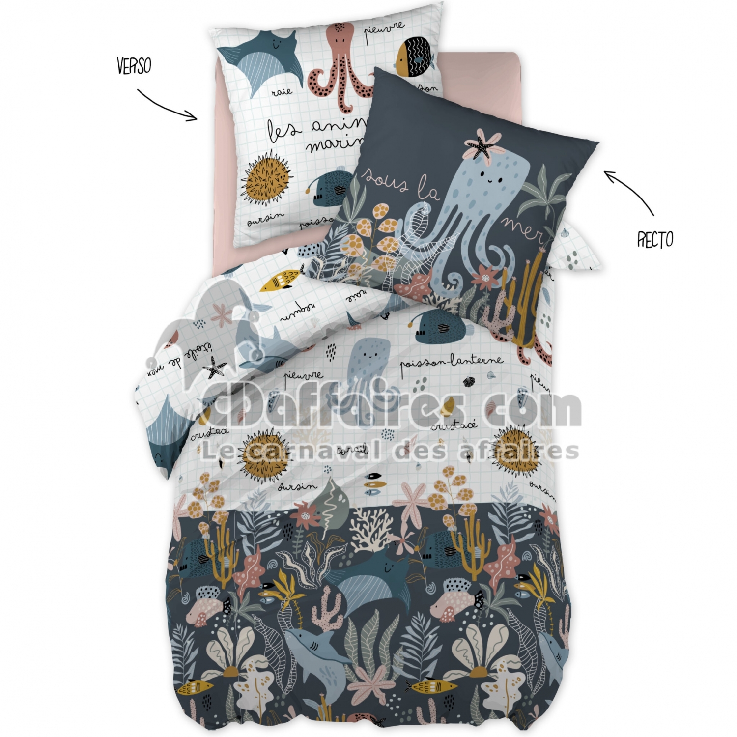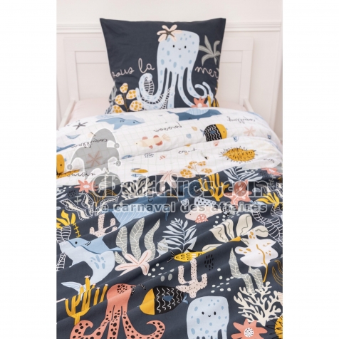 Housses de couette > Plongez dans un univers marin coloré et apaisant avec la parure de lit Octopia. Confectionnée en 100 % coton 57 fils/cm², cette housse de couette. Taille 200 x 200 cm.