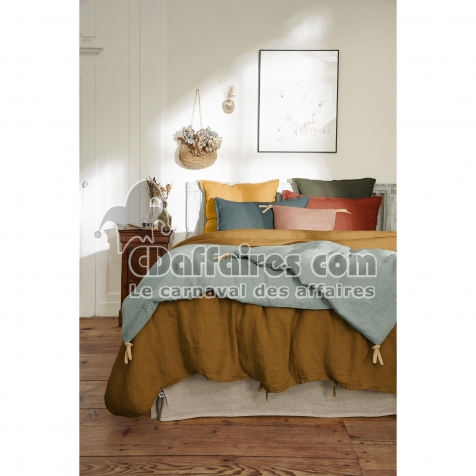 Housse de Couette 240 x 220 cm – Lin Lavé Français Luxe Soline – Caramel - CDAffaires