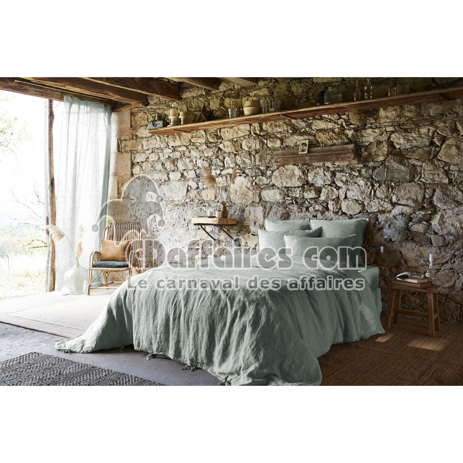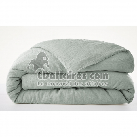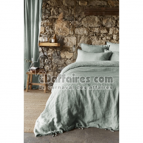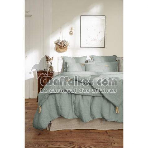 Housses de couette > Apportez élégance, authenticité et confort naturel à votre chambre avec la housse de couette en lin lavé SOLINE, coloris Eucalyptus. Confectionnée à. Taille 140 x 200 cm.