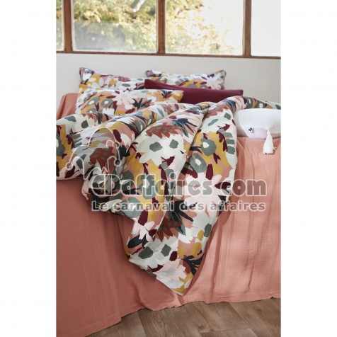 Housses de couette > La housse de couette LÉANE apporte une touche chaleureuse et contemporaine à votre chambre grâce à son magnifique imprimé floral aux teintes naturelles. Taille 200 x 200 cm.