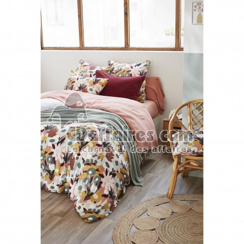 Housses de couette > La housse de couette LÉANE apporte une touche chaleureuse et contemporaine à votre chambre grâce à son magnifique imprimé floral aux teintes naturelles. Taille 260 x 240 cm.