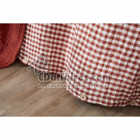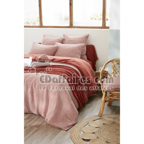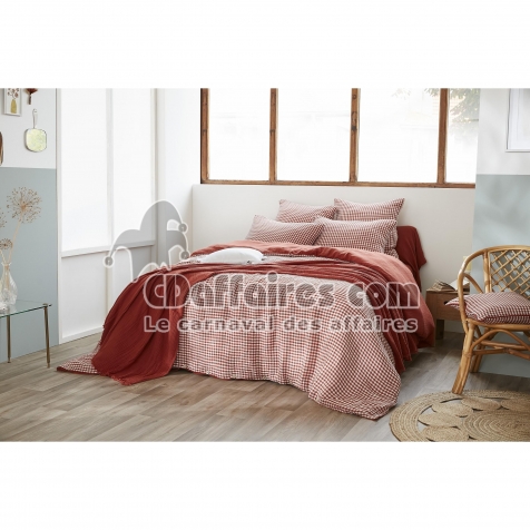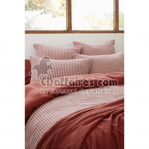 Housses de couette > Transformez votre chambre en un cocon chaleureux avec la housse de couette VICKIE Terracotta, confectionnée en double gaze de coton tissée teintée, une. Taille 200 x 200 cm.