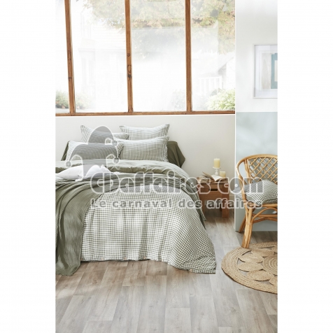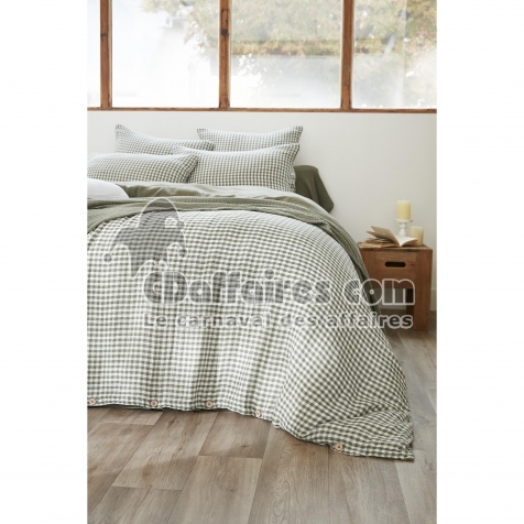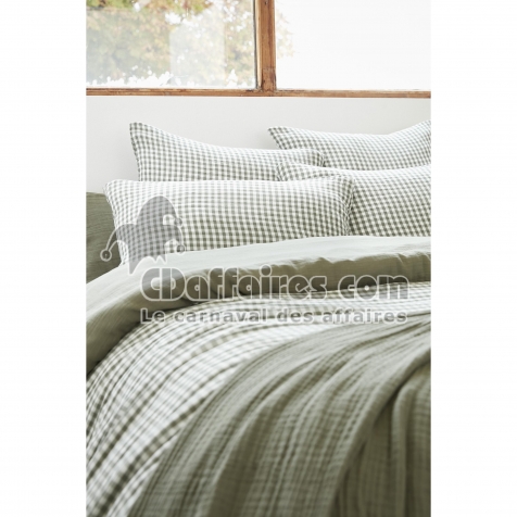 Housses de couette > Plongez votre chambre dans une ambiance naturelle, douce et élégante avec la housse de couette VICKIE Romarin, confectionnée en double gaze de coton tissée. Taille 200 x 200 cm.