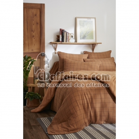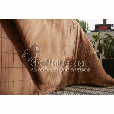 Housses de couette > Plongez dans une atmosphère chaleureuse et apaisante avec la housse de couette réversible GAÏA MATCH. Confectionnée en double gaze de coton tissée-teinte,. Taille 240 x 220 cm.