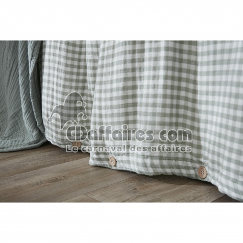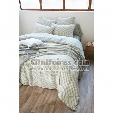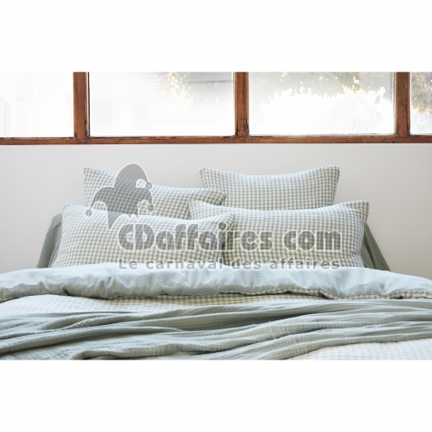 Housses de couette > Invitez la douceur végétale et une atmosphère zen dans votre chambre avec la housse de couette VICKIE Eucalyptus, confectionnée en double gaze de coton. Taille 200 x 200 cm.