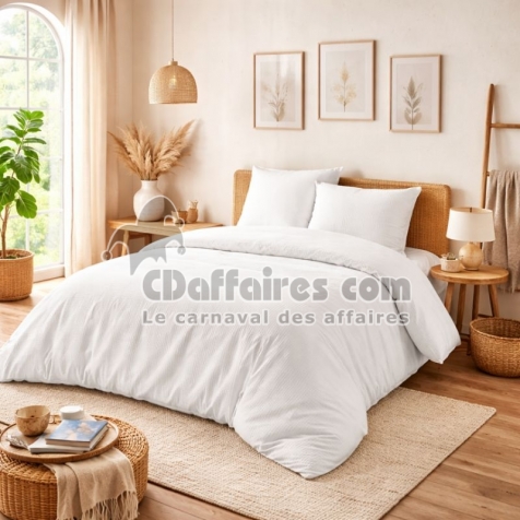 Housses de couette > Apportez luminosité, fraîcheur et élégance à votre chambre avec la parure de couette NIDRA en coton nid d’abeille blanc. Intemporelle et raffinée,. Taille 240 x 220 cm.