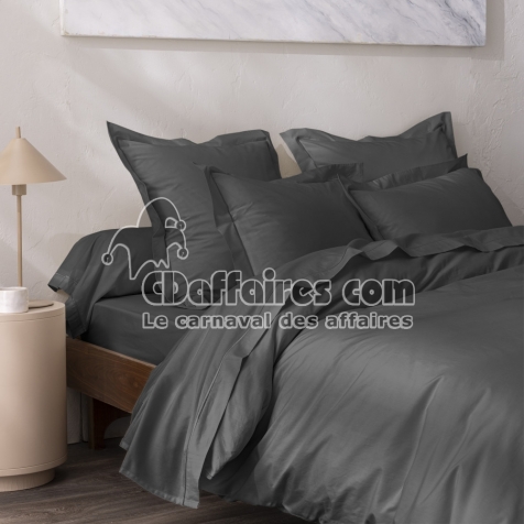 Housse de couette 240 x 220 cm Grand Hôtel Signature Ardoise — Percale de coton peigné 80 fils/cm² - CDAffaires