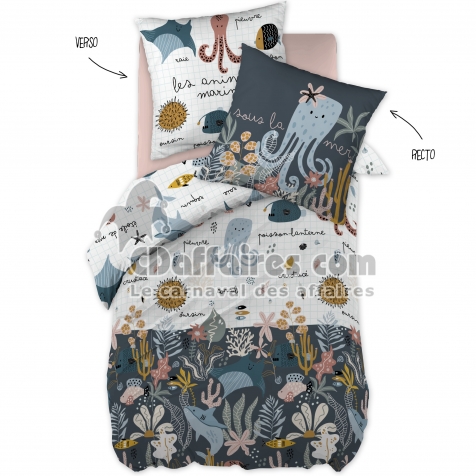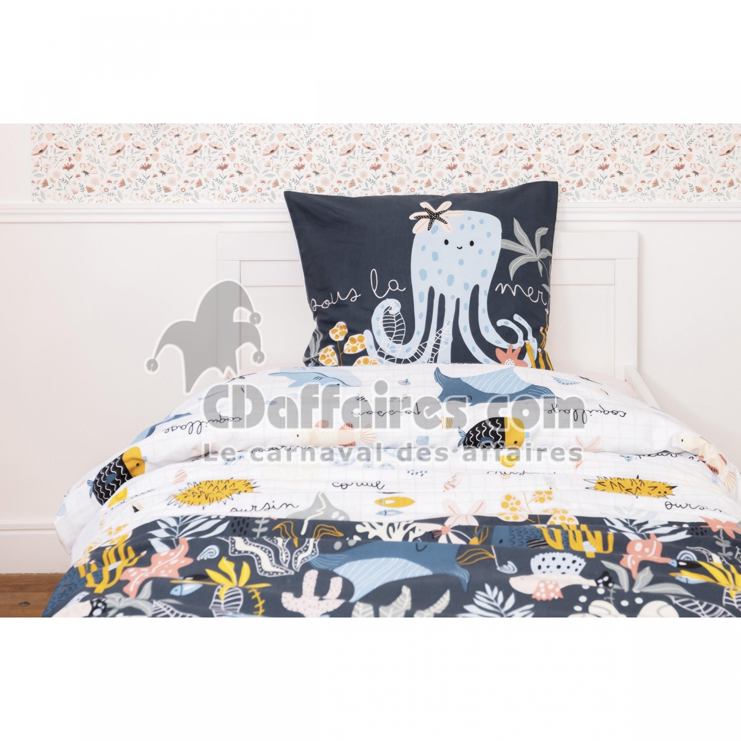 Housses de couette > Découvrez notre housse de couette en pur coton 57 fils, originale, drôle et aux couleurs pastels. Cette parure de couette au tissage serré à une ouverture. Taille 240 x 220 cm.