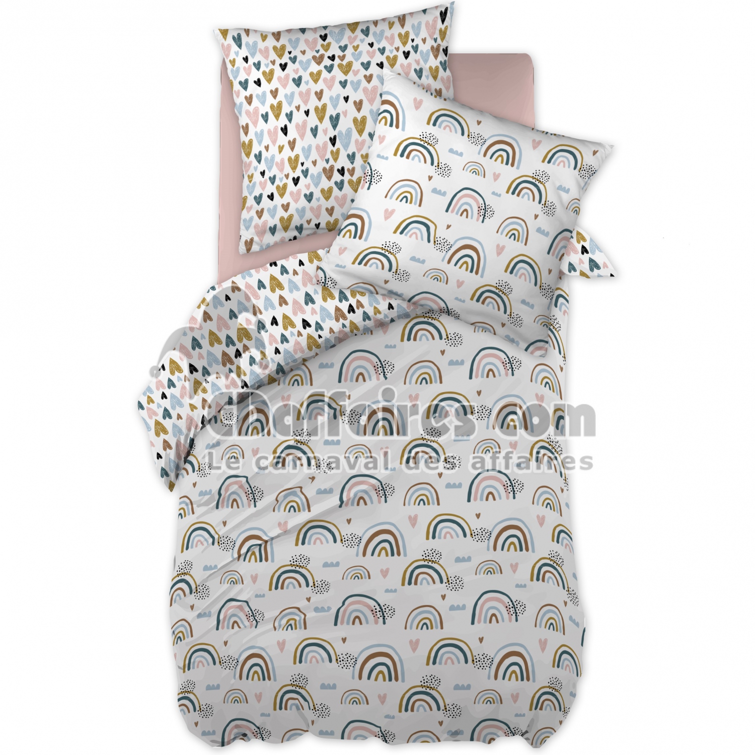 Housse de couette 200x200 + 2 taies d100% coton Arcoeur - CDAffaires