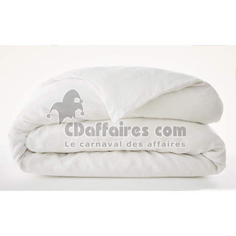 Housse de couette 240 x 220 cm Lin lavé français Soline Blanc - CDAffaires