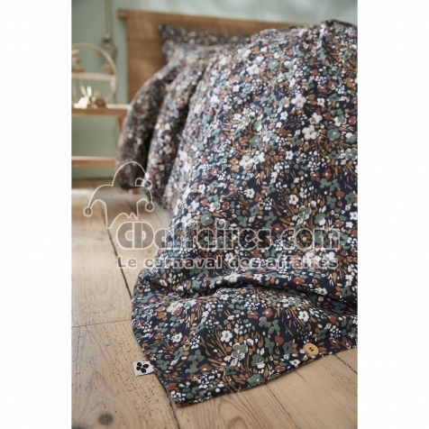 Housse de couette 260 x 240 cm double gaze de coton imprimée Capucine Bleu foncé - CDAffaires