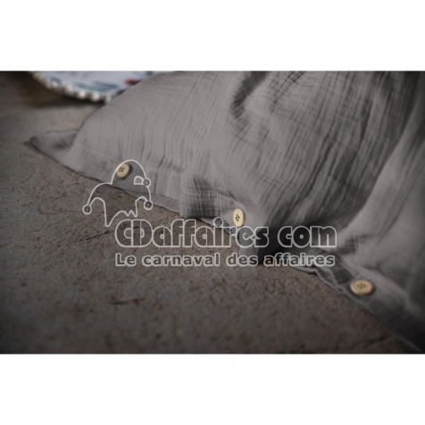 Housses de couette > Cet ensemble se compose d'une housse de couette 240x220 cm + 2 taies d'oreiller 60x60 cm couleur Anthracite. La gaze de coton 74 fils/cm² est une matière. Taille 240 x 220 cm.