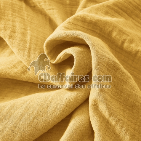 Pack double gaze de coton housse de couette 240 x 220 cm + 2 taies d'oreiller 60 x 60 jaune Jaune - CDAffaires