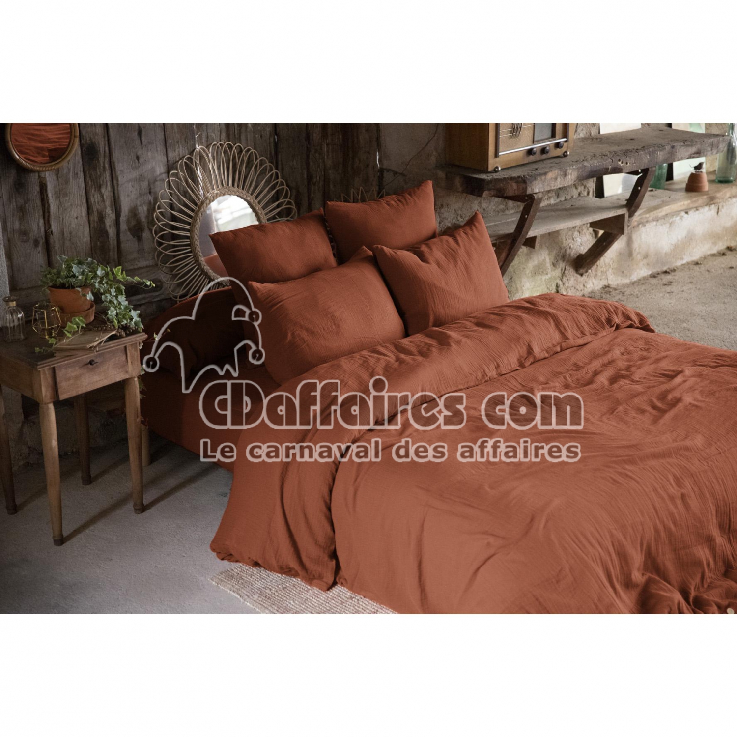 Housses de couette > Offrez à votre chambre une atmosphère douce et naturelle avec ce pack complet en gaze de coton comprenant une housse de couette 260x240 cm, un drap housse. Taille 260 x 240 cm.