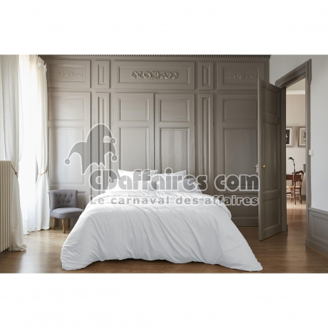 Pack Housse de couette 240 x 220 cm bambou de satin 120 fils Salomé + Drap housse 140 x 190 cm Blanc - CDAffaires