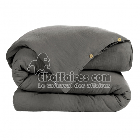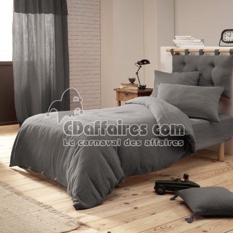 Pack parure de couette 140 x 200 cm + drap housse 90 x 190 cm + 1 taie en double gaze de coton Granit - CDAffaires