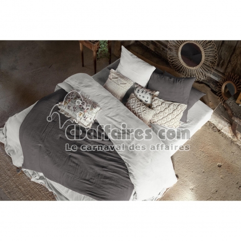 Pack parure de lit en gaze de coton 260 x 240 cm + drap housse 160x200 cm + 2 taies 60x60 cm - Nuage - CDAffaires