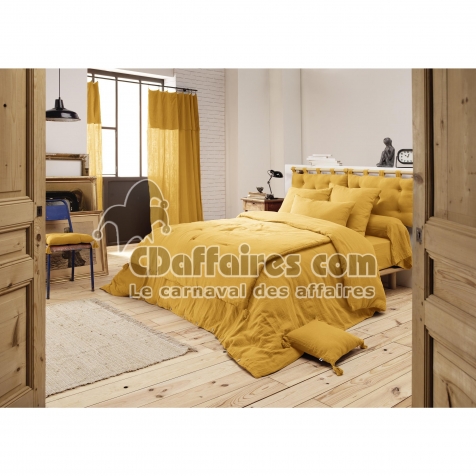 Pack parure de lit en gaze de coton 260 x 240 cm + drap housse 160x200 cm + 2 taies 60x60 cm - Safran - CDAffaires