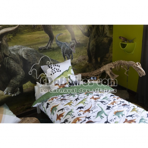 Housses de couette > Faites rugir l’imagination de votre enfant avec cette housse de couette au design jurassique ! Un motif ludique et coloré peuplé de dinosaures mythiques. Taille 200 x 200 cm.