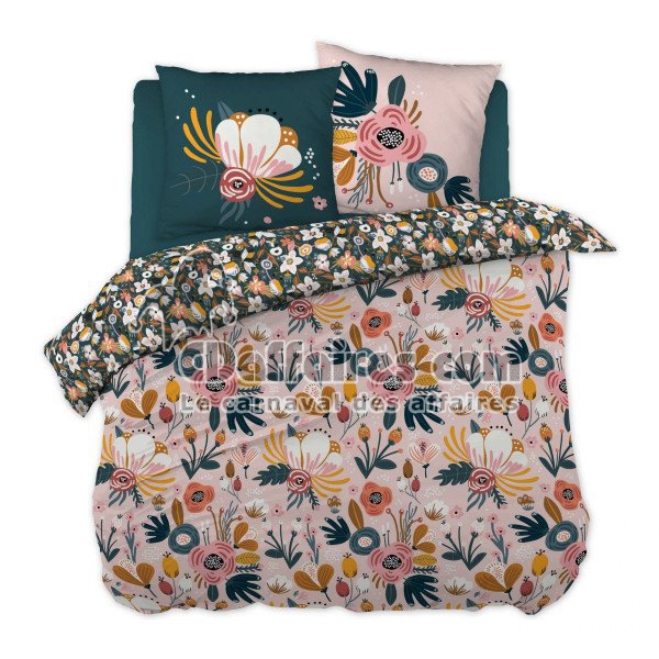 parure de lit (housse de couette + 2 taies d'oreiller) coton imprimé 260 x 240 cm champetre - CDAffaires